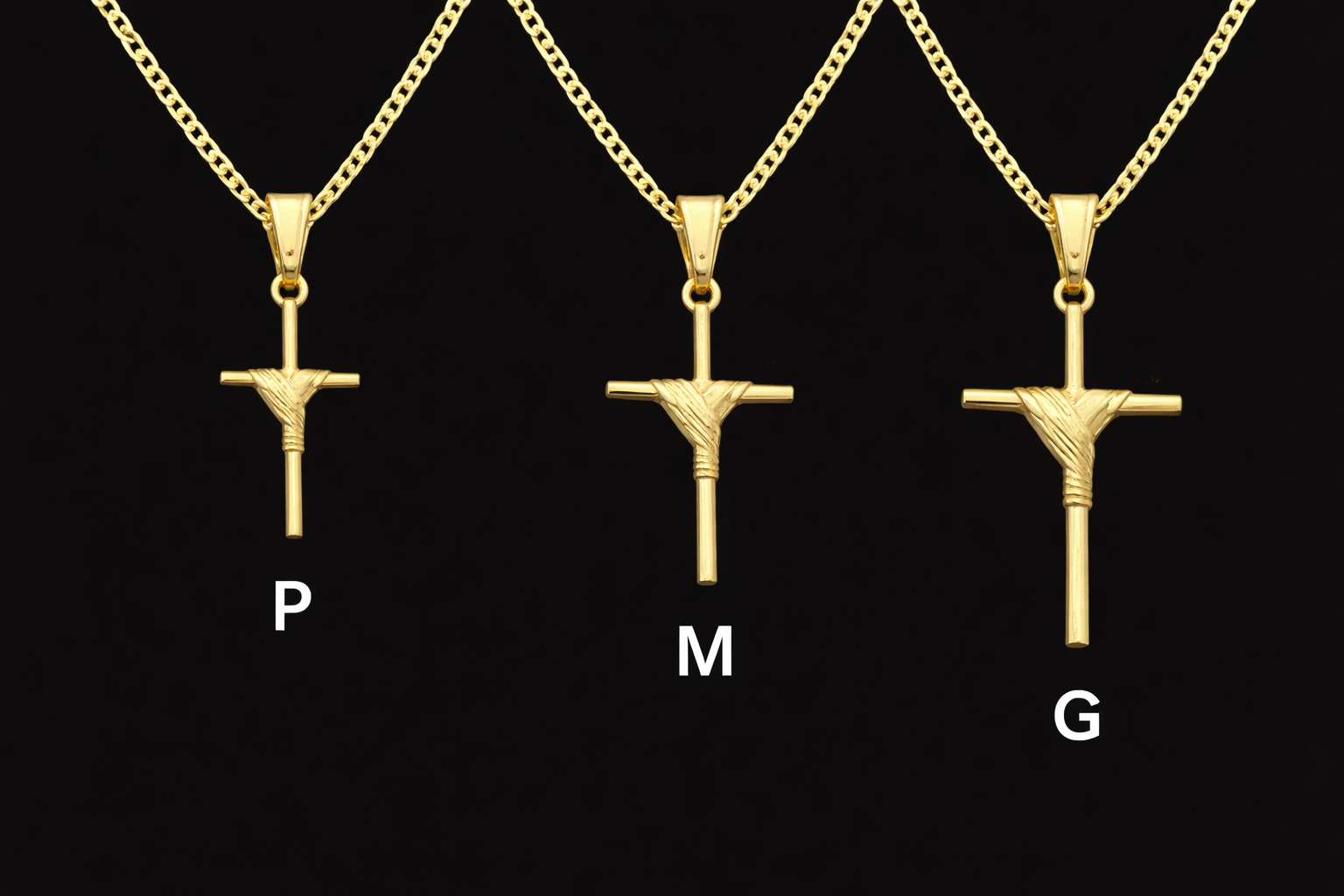 Pingente Crucifixo Premium Banhado a Ouro 18K – Tamanhos P, M e G