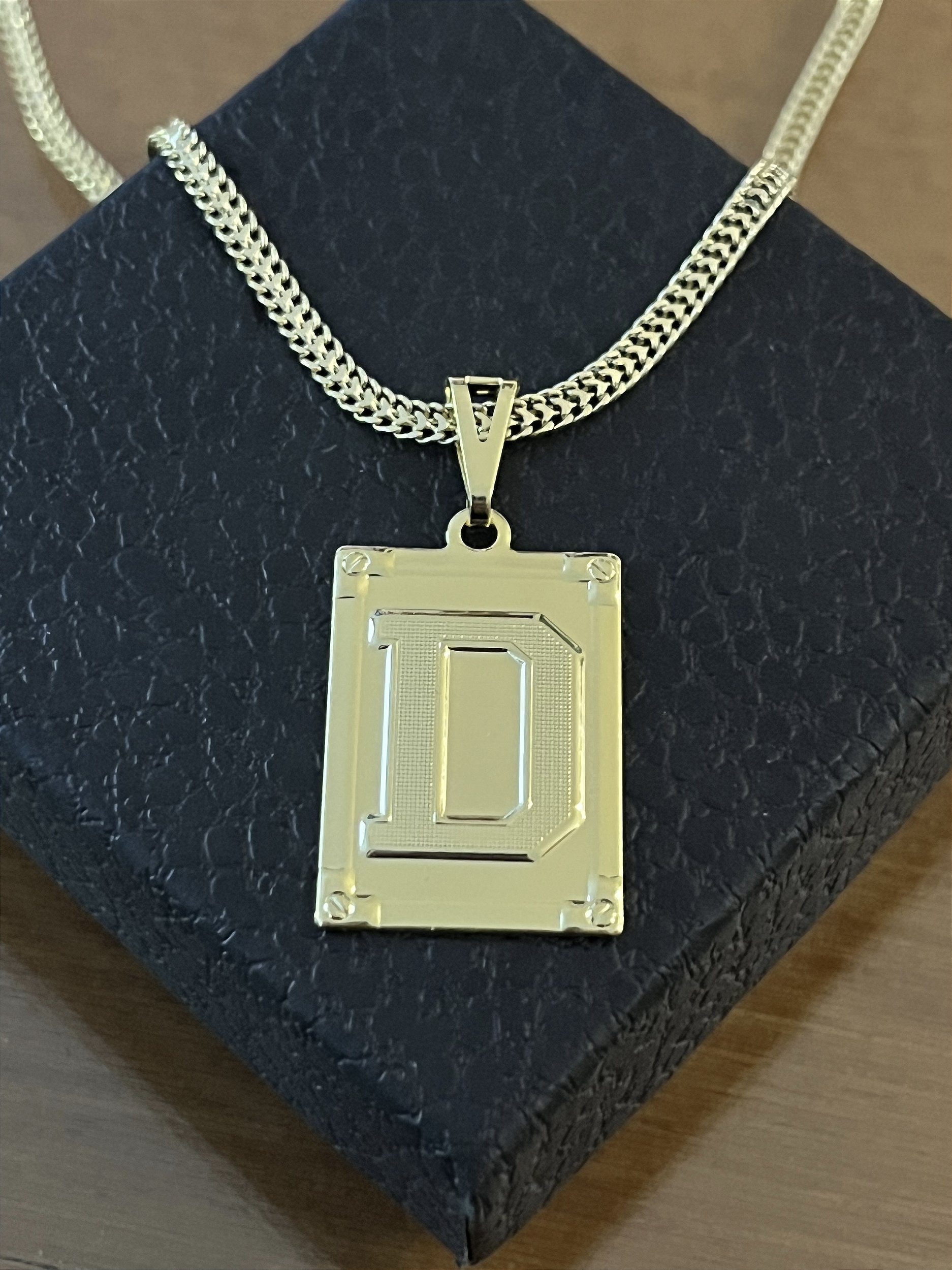 PINGENTE PLACA LETRA D Tamanho (M)( 2g- 3x4cm) BANHO DE OURO 18K