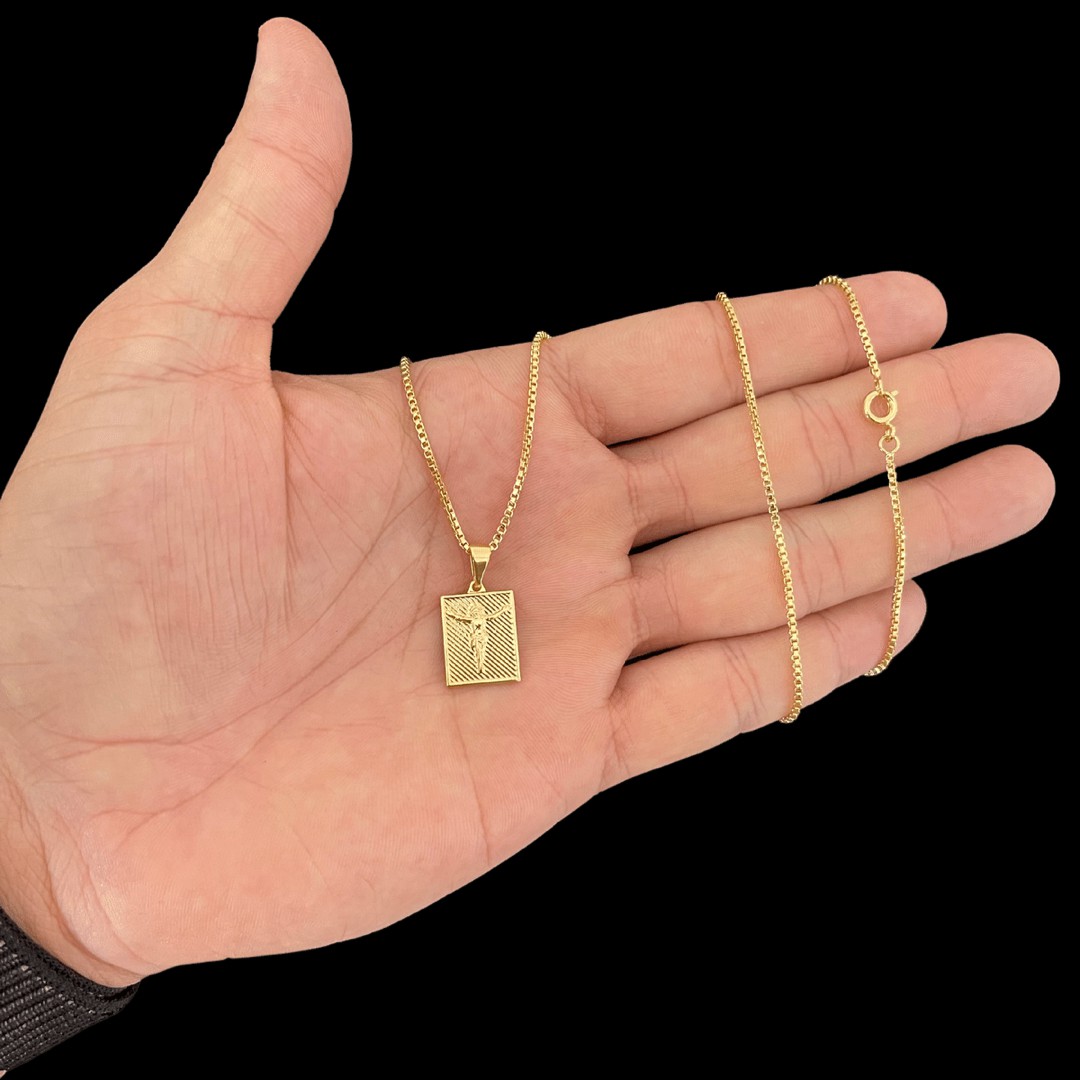 CORRENTE VENEZIANA (2.0 mm- 70cm) + PINGENTE PLAQUINHA 3D - BANHADO A OURO 18K.