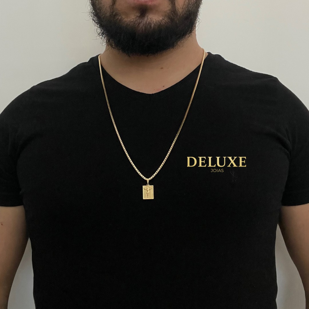 CORRENTE VENEZIANA ( 2.5mm -70cm) + PINGENTE PLACA CRUCIFIXO - BANHO DE OURO 18k