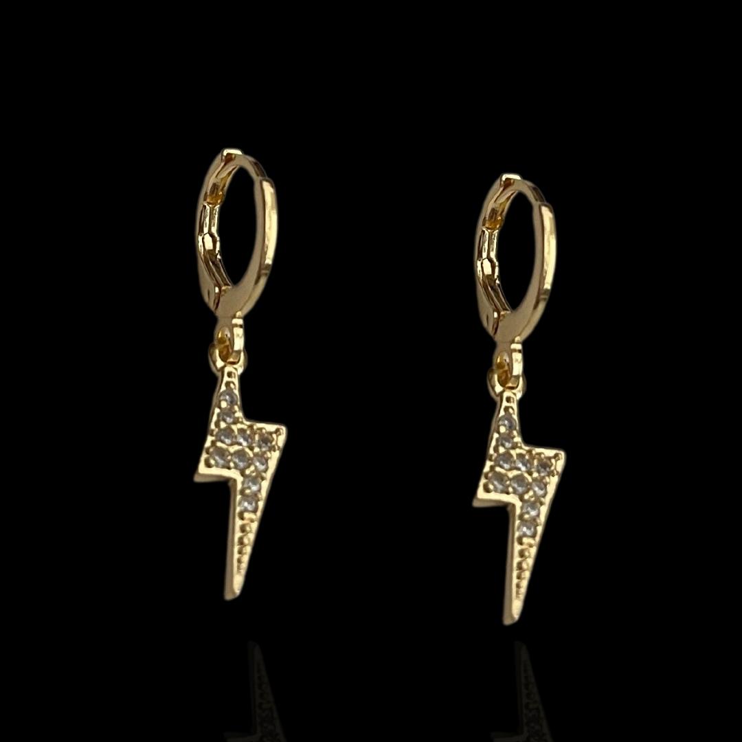 PAR DE BRINCO ARGOLA COM RAIO CRAVEJADO EM PEDRA ZIRCÔNIA PREMIUM - BANHADO A OURO 18K