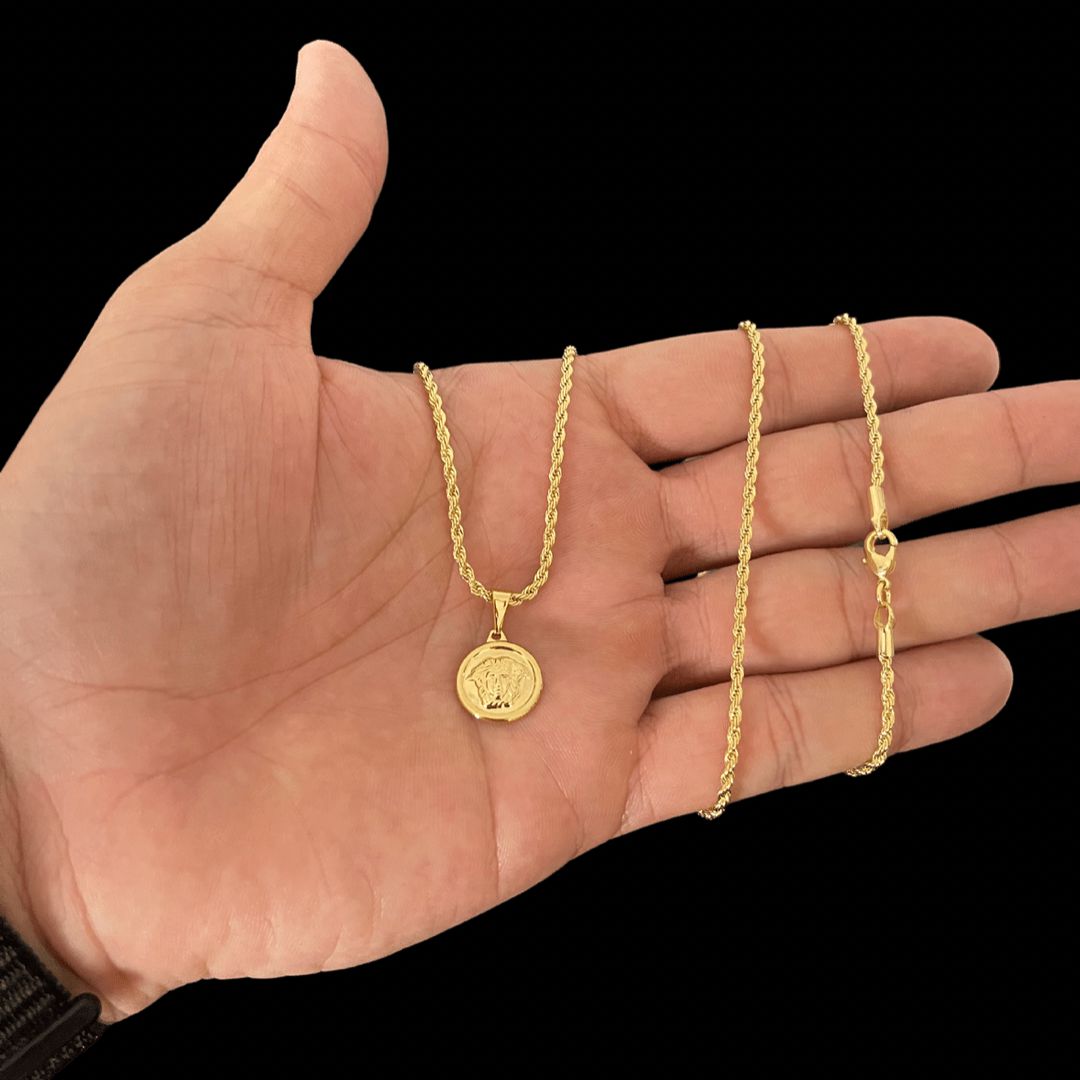 CORRENTE BAIANA (2MM- 70CM) + PINGENTE MEDUSA - BANHADO A OURO 18K