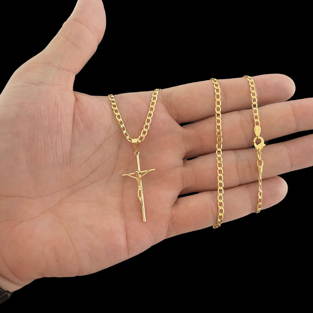CORRENTE GRUMET( 2mm- 60 ou 70cm) + PINGENTE CRUCIFIXO - BANHADO A OURO 18K