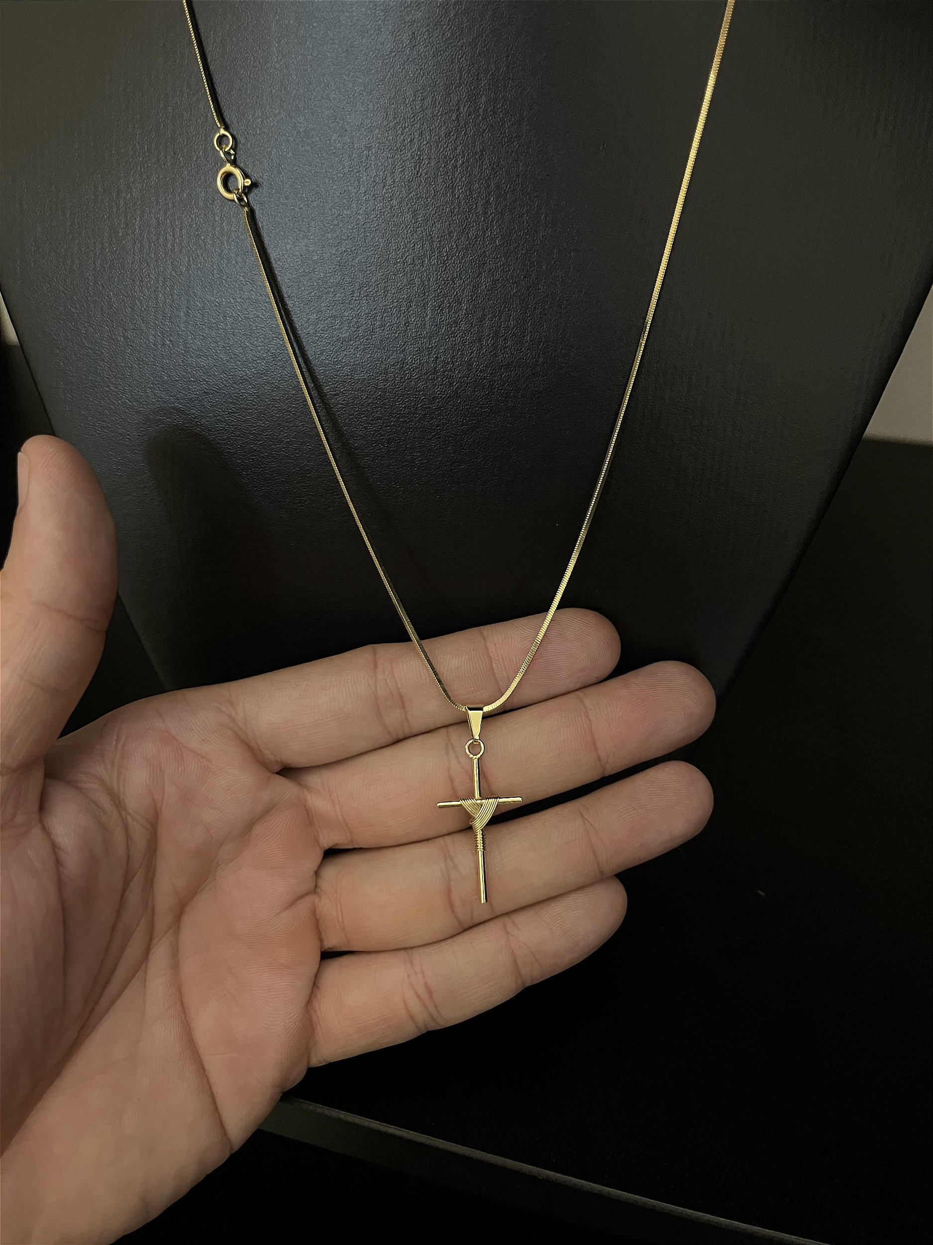 CORRENTE RABO DE RATO (1.8MM - 60cm ou 70cm) + PINGENTE CRUZ AMARRADA - BANHADO A OURO 18k