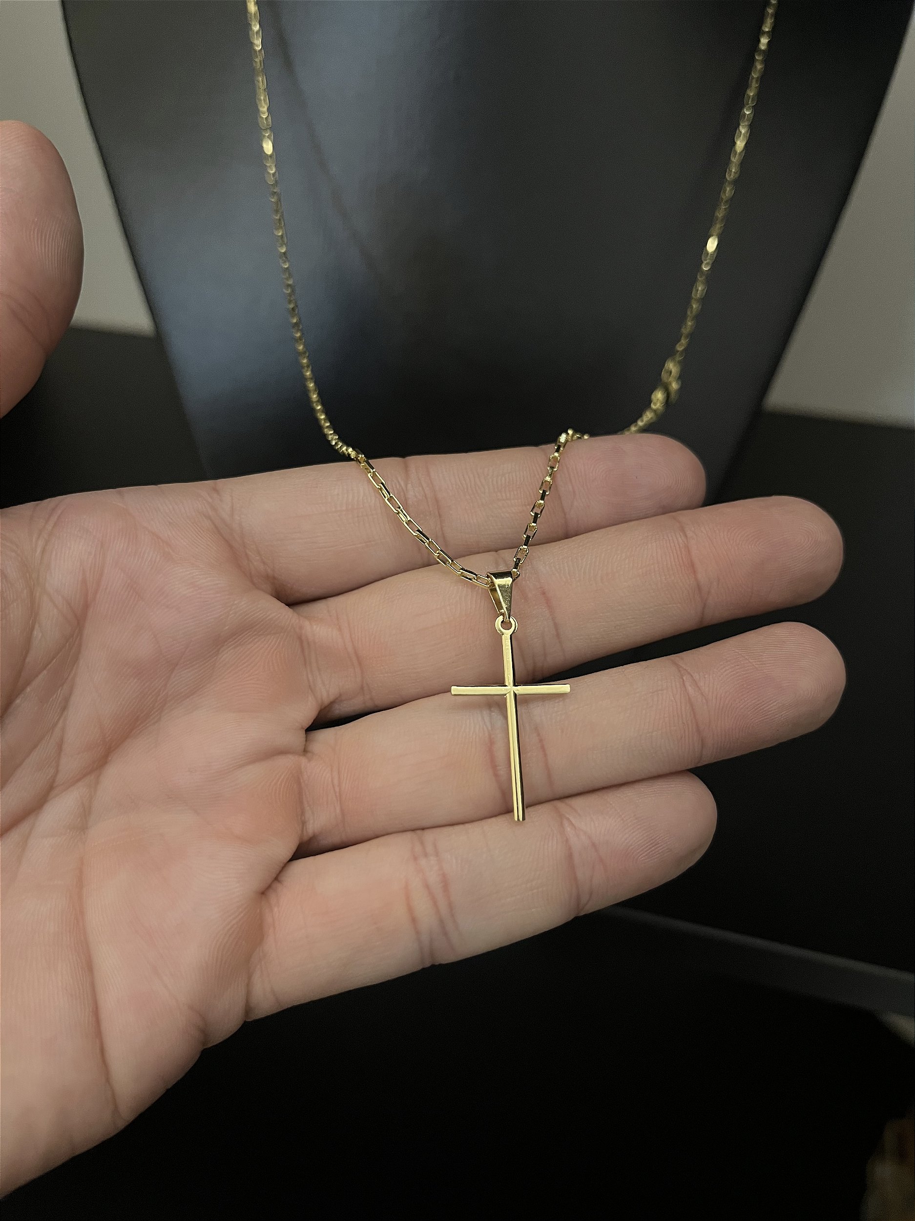 CORRENTE TIJOLINHO (1.5MM-50cm, 60cm ou 70cm +) + PINGENTE CRUZ PALITO