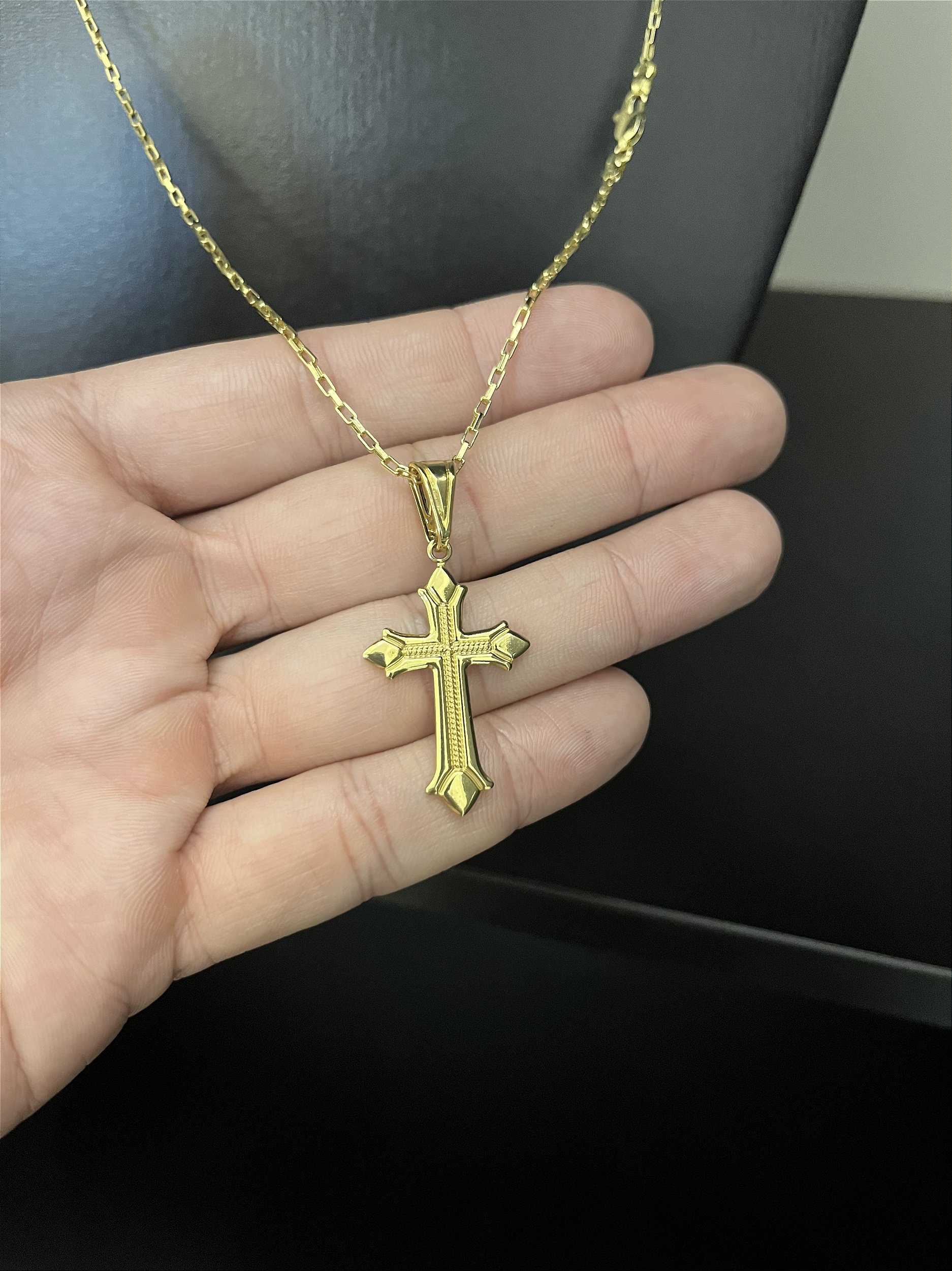 CORRENTE TIJOLINHO (1.5MM-50cm, 60cm ou 70cm +) + PINGENTE CRUZ RACIONAIS