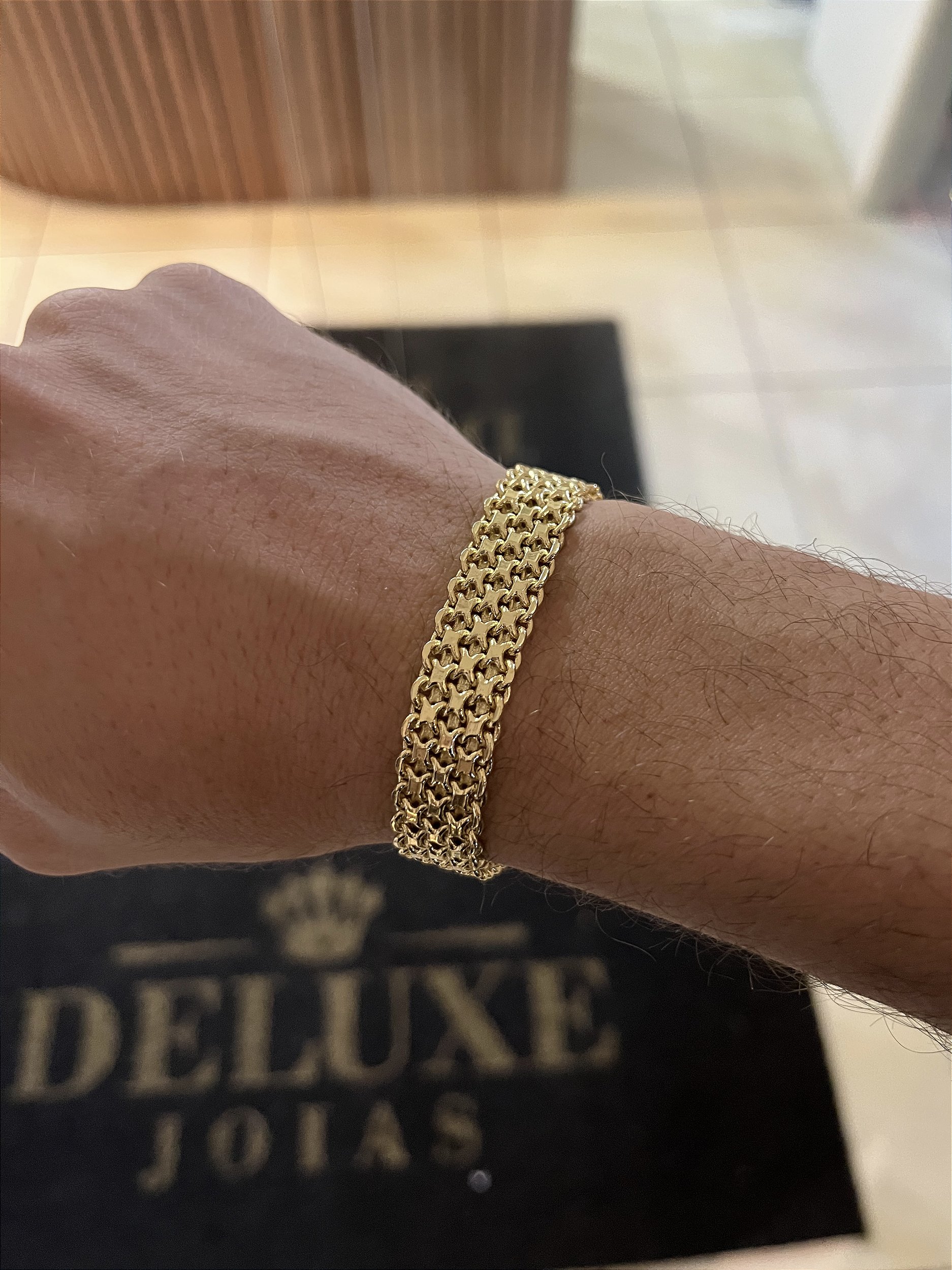 PULSEIRA CADEADO DUPLO (10mm- 36G -21 CM) - FECHO COM MARCAÇÃO 750 - BANHO DE OURO 18k