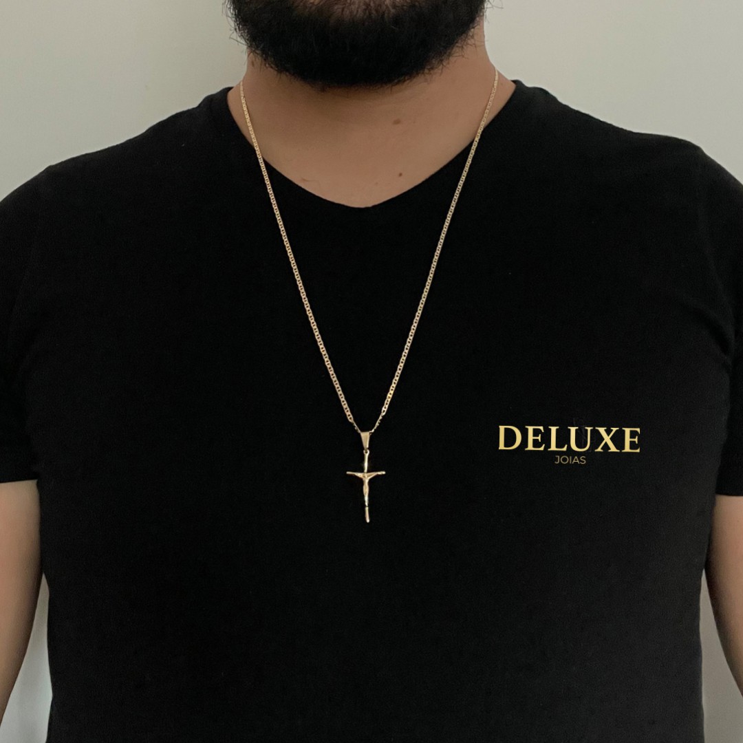 CORRENTE PIASTRINE( 2mm-70cm) + PINGENTE CRUCIFIXO -BANHADO A OURO 18K.