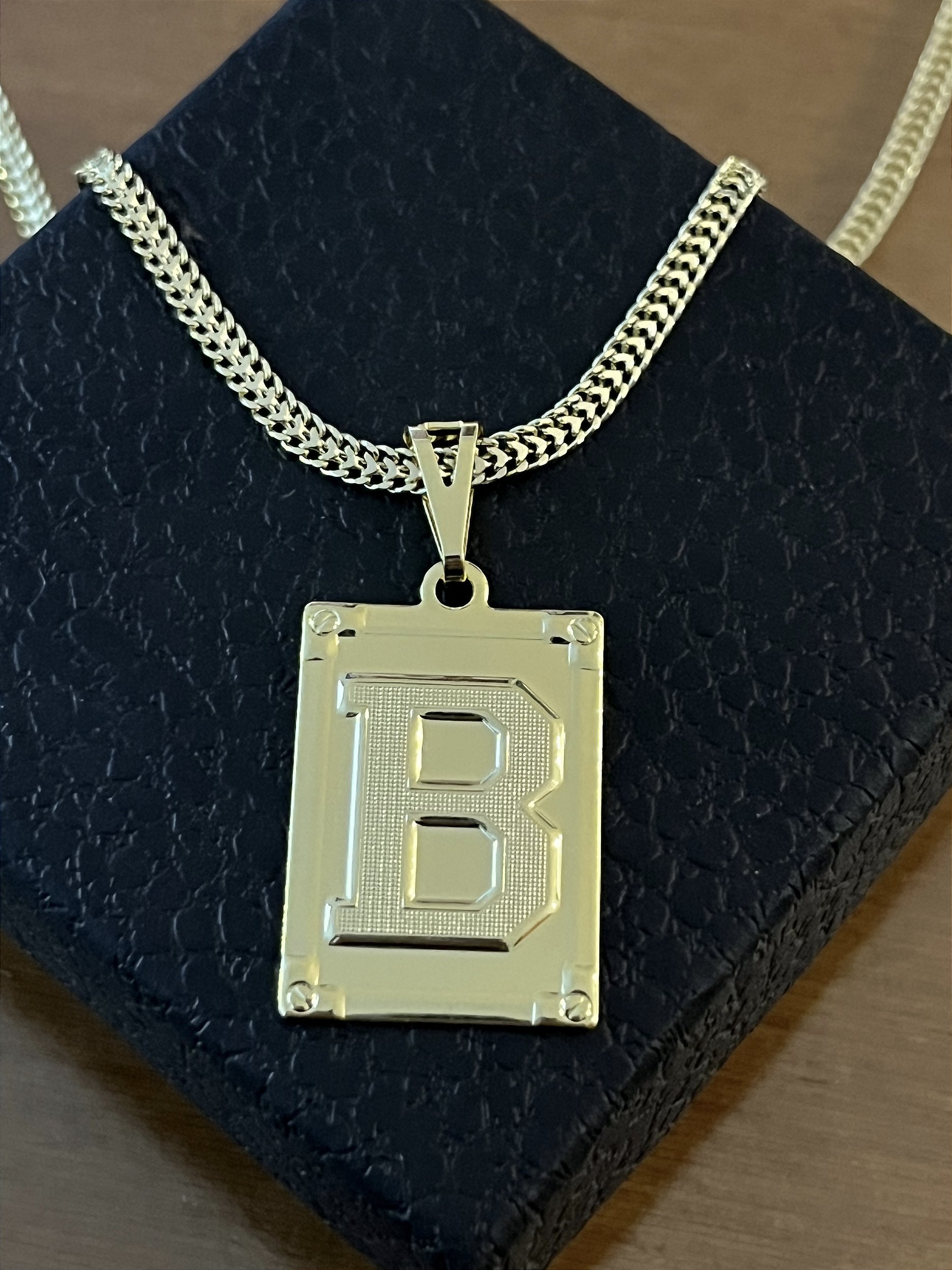 PINGENTE PLACA LETRA B Tamanho (M)( 2g- 3x4cm) BANHO DE OURO 18K