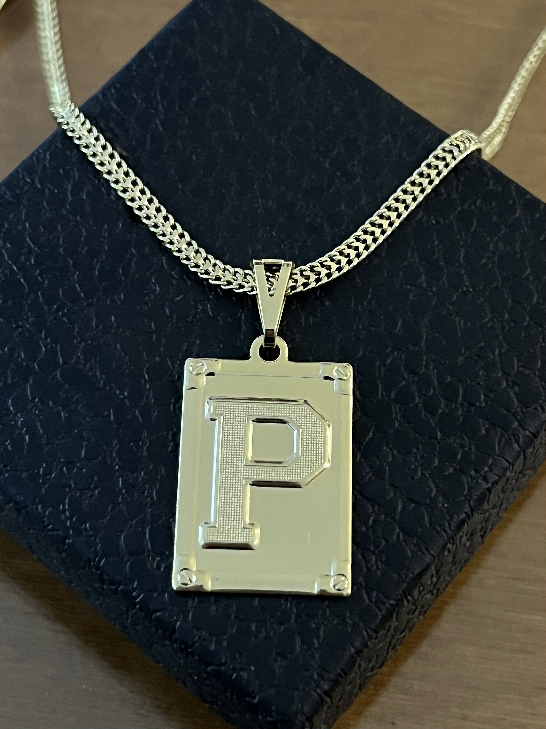 PINGENTE PLACA LETRA P Tamanho (M)( 2g- 3x4cm) BANHO DE OURO 18K