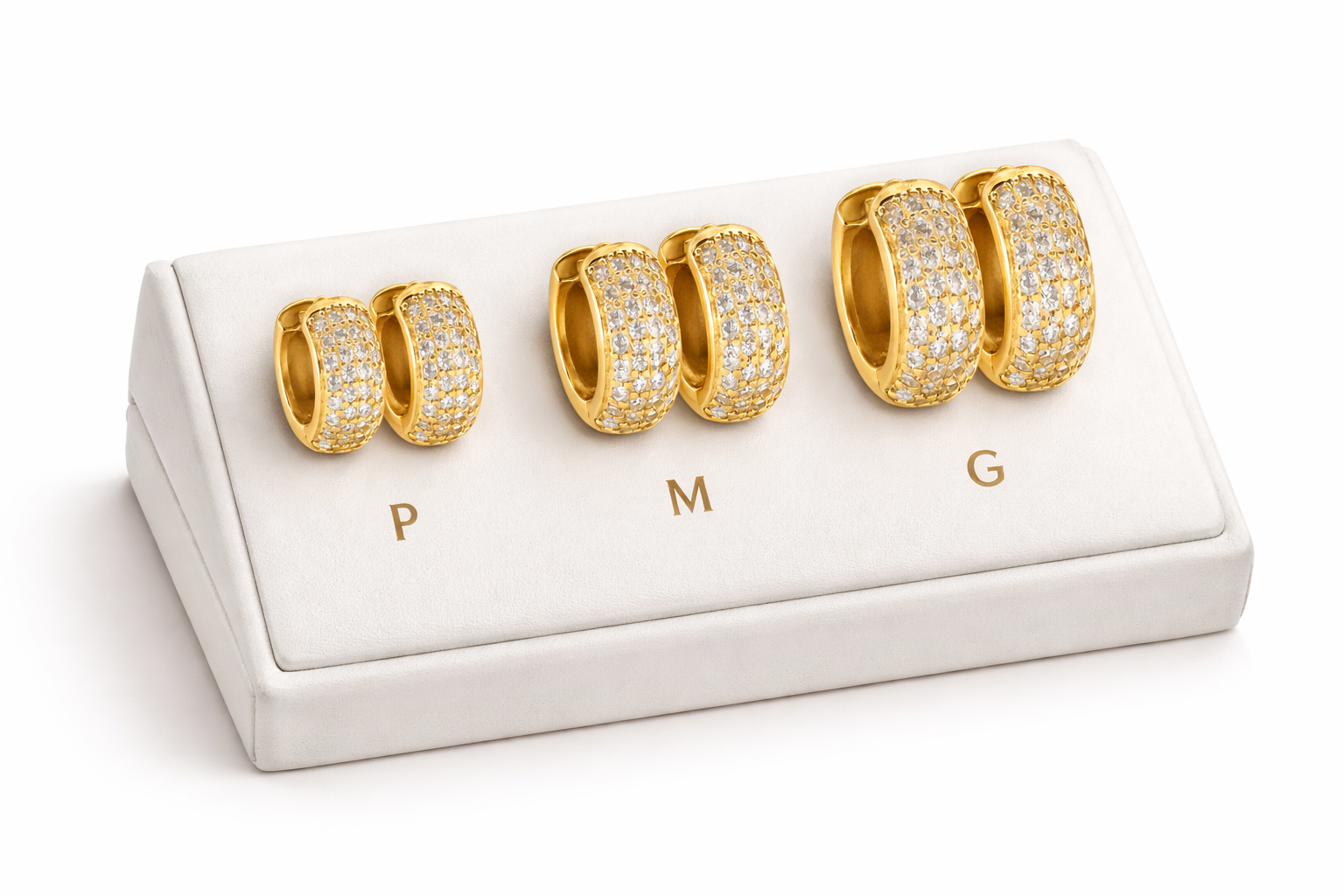 KIT 3 PARES BRINCO ARGOLA CRAVEJADA EM ZIRCONIA PRMIUM P, M E G ANTI ALERGICOS - BANHADO A OURO 18K
