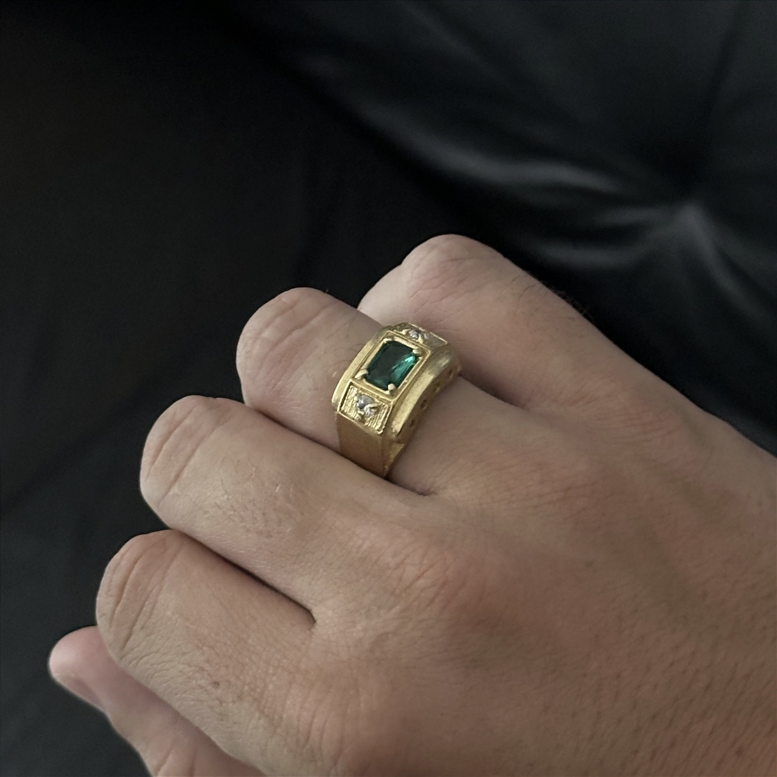 ANEL PEDRA DE ZIRCÔNIA VERDE - FEITO DE MOEDA ANTIGA